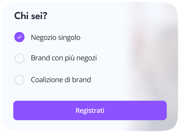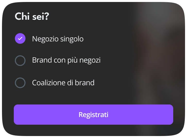 Scegli il tipo di programma (cashback, punti, bollini, pagamento o livelli) e se partire da solo o in rete.