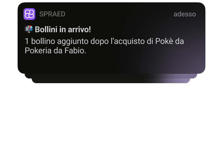 Subito dopo l’acquisto il cliente riceve una notifica: il bollino accumulato è disponibile nel suo saldo in app.