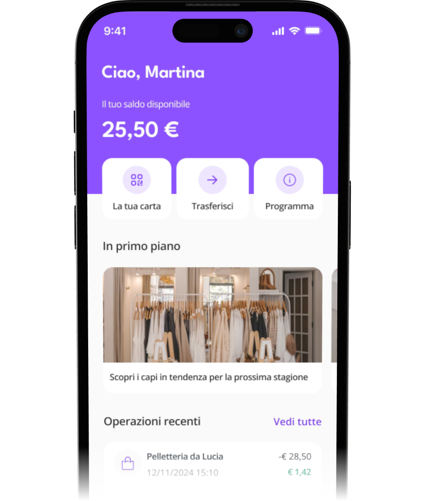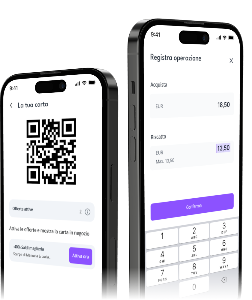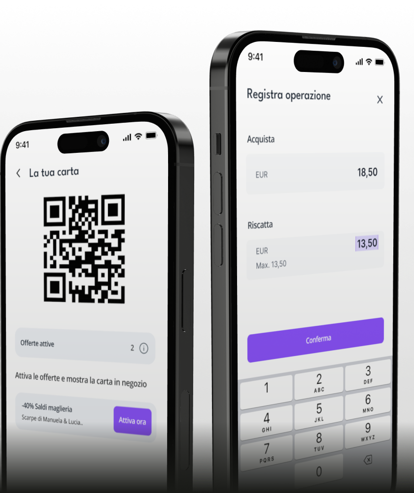 Il partecipante gestisce iscrizioni, punti, cashback e premi. L’esercente ha il pieno controllo sulle transazioni, i dati e i comportamenti dei clienti.